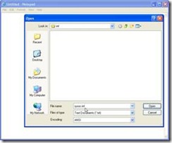 - Buka Notepad dan pilih menu File > Open. Arahkan ke folder